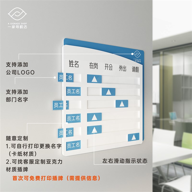 创意个性b工作人员去向牌办公室岗位人员现状态标识牌亚克力可定