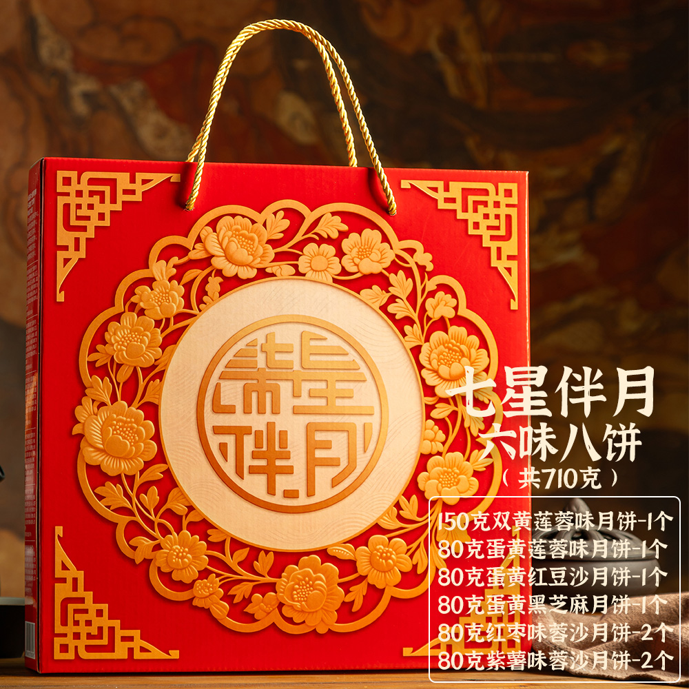 皇冠世家七星伴月大礼盒广式月饼老式中秋节礼品团购送礼莲蓉蛋黄