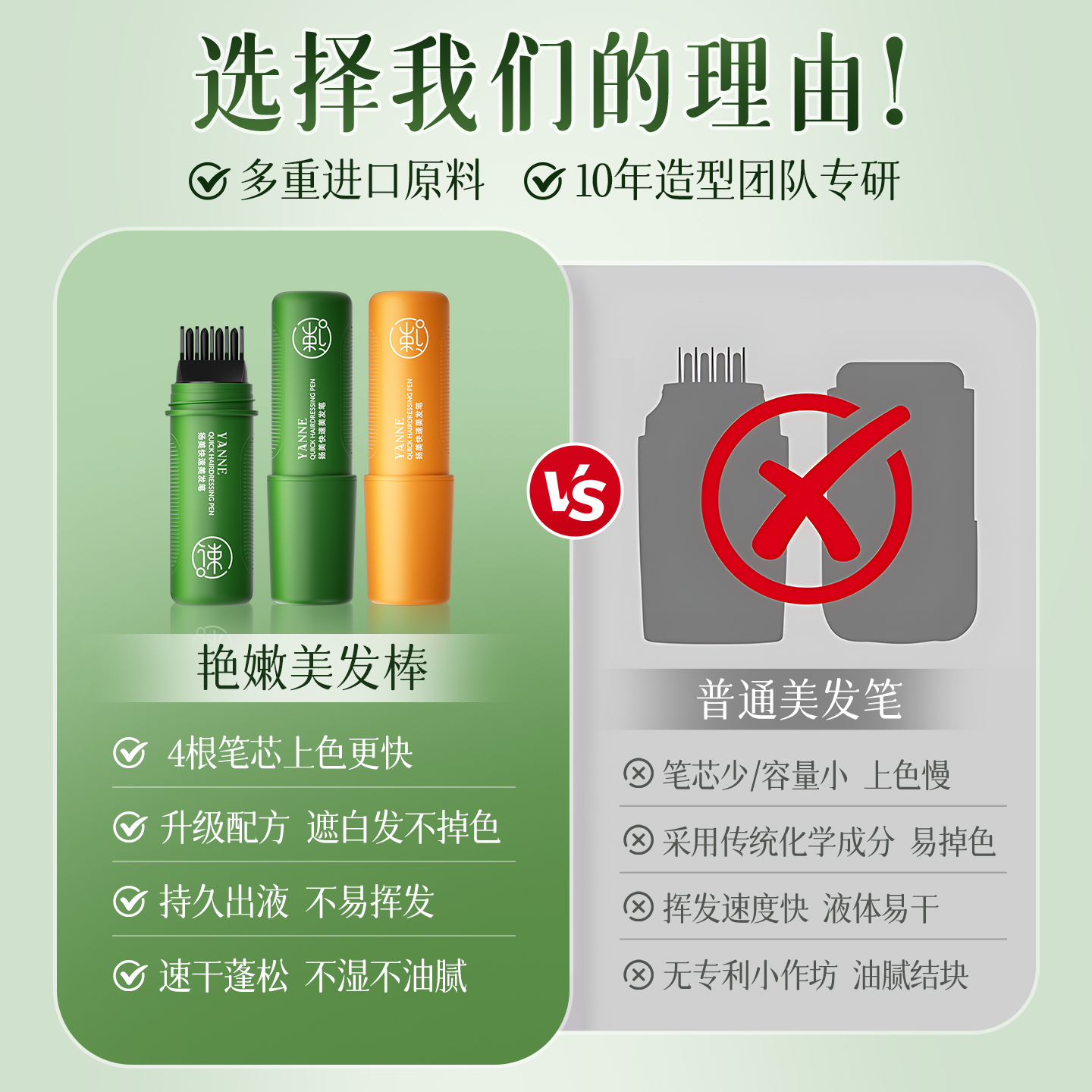 美发棒植物遮盖白发一涂黑一次性染发剂染发笔染发膏快速黑发神器