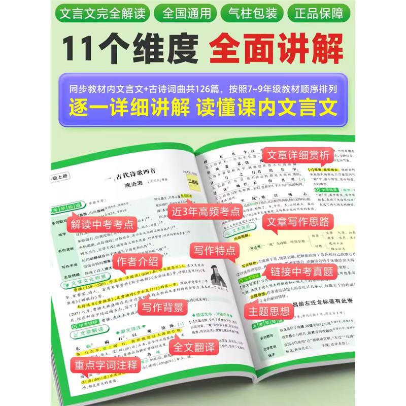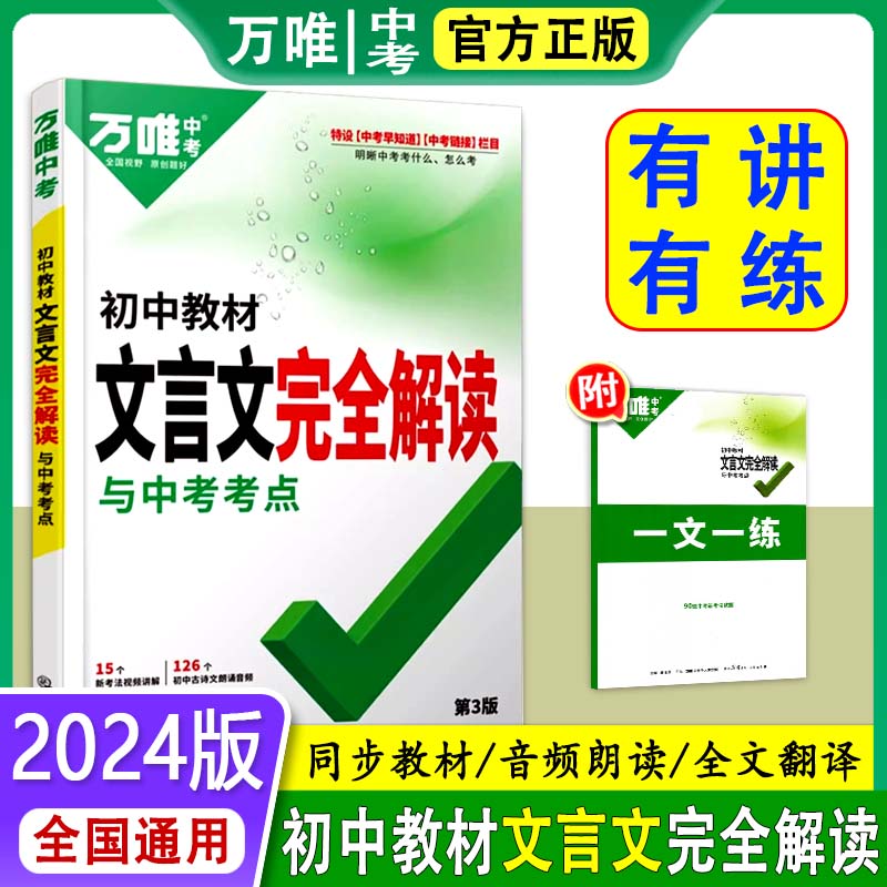 万唯中考初中教材文言文完全解读一本通语文专项训练万维初三八九七年级必背古诗词和全解练习册阅读理解书考点古诗文学习积累地理