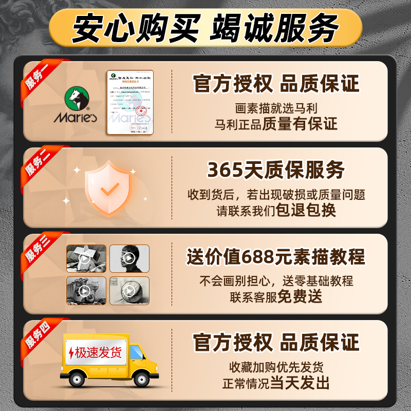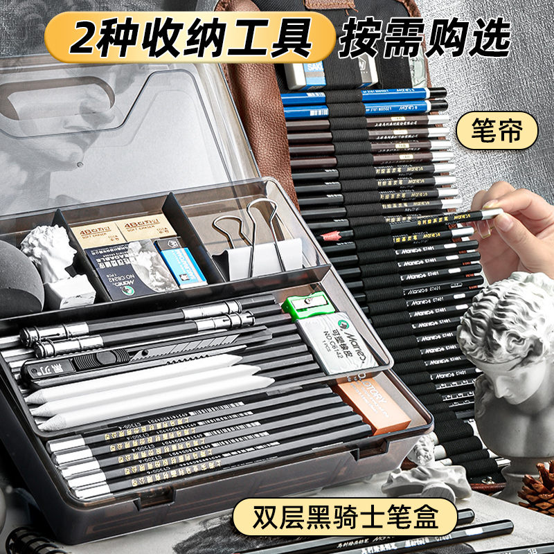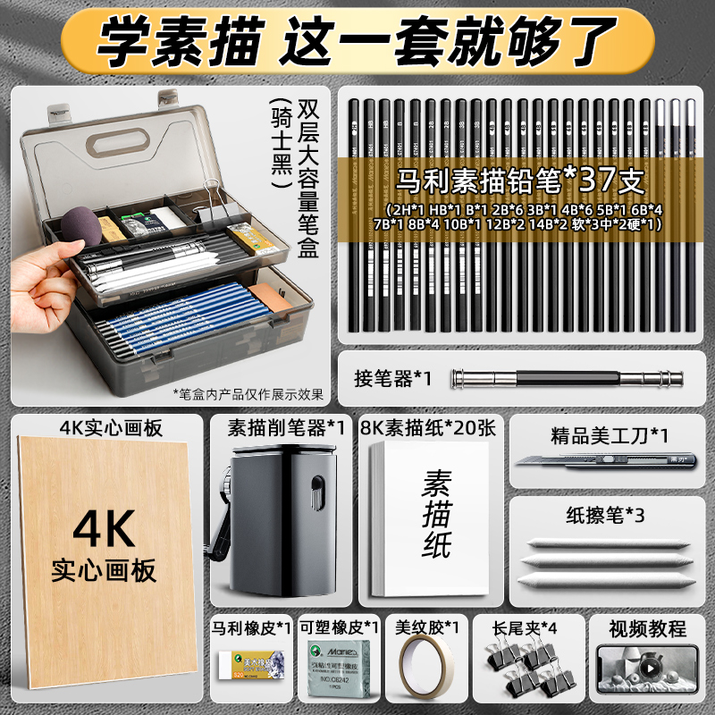 马利牌素描工具套装炭笔绘画工具全套美术生专用初学者铅笔素描笔套装画画专用碳笔玛丽全套笔帘4b2比速写8b