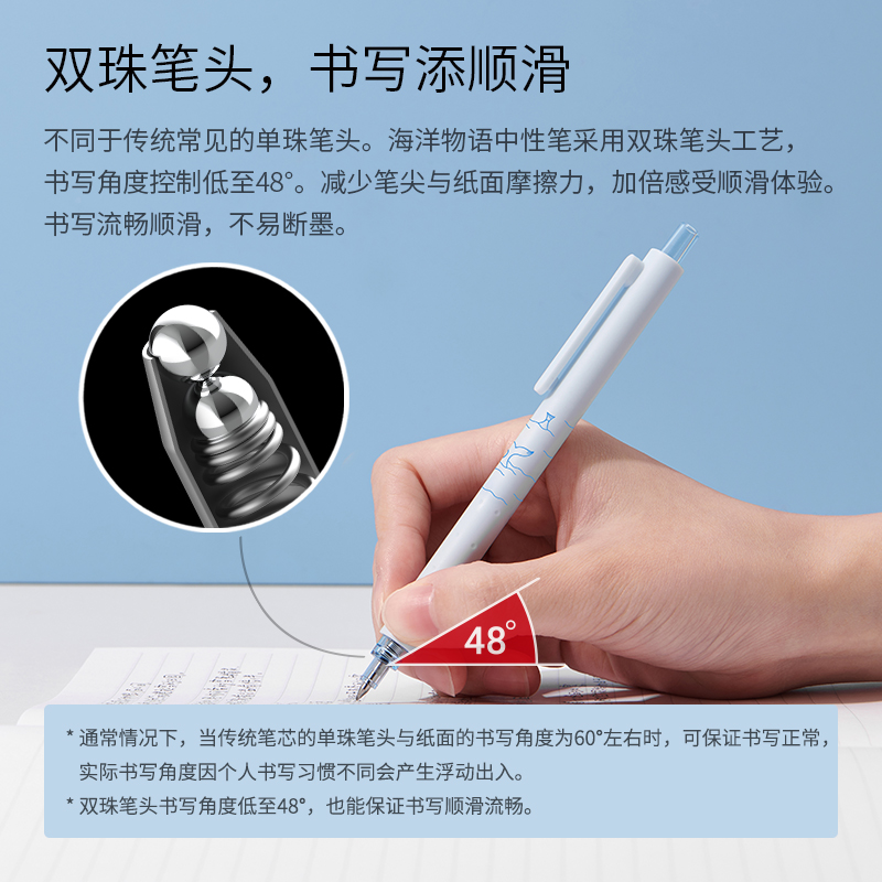 KACO中性笔菁点海洋物语双珠速干黑笔ins风高颜值网红笔按动式3支装0.5刷题笔水笔与海为邻套装组合实惠旗舰