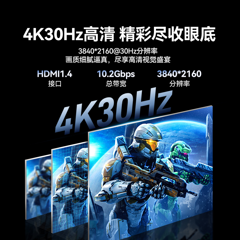 山泽hdmi分配器一进二出切换器一分二双屏同显4K高清线分频器电视机顶盒电脑视频屏幕1进2出一拖二分线分屏器