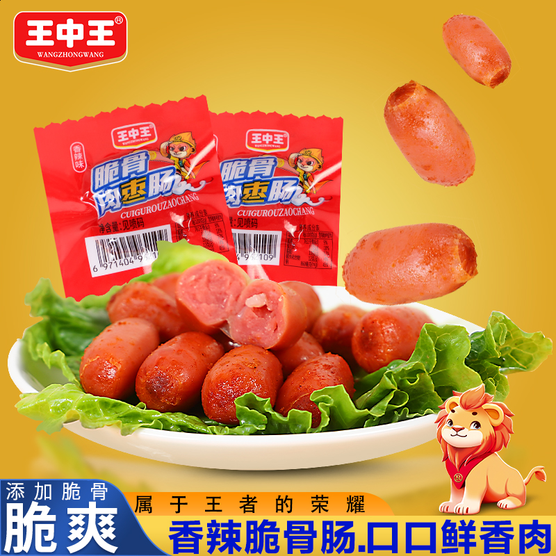 王中王休闲小零食鸡肉脆骨肠香辣味玉米味即食火腿肠一口肉枣香肠