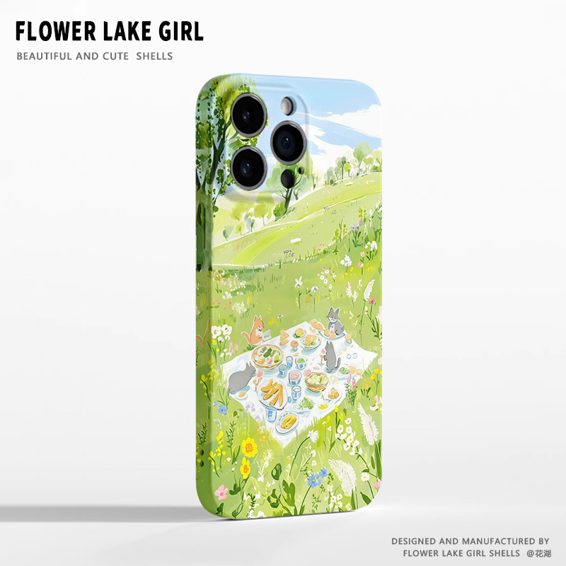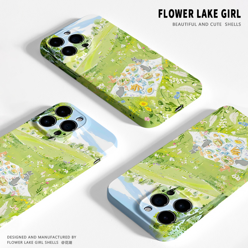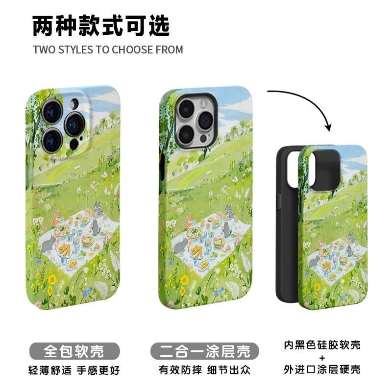 在春天~油画野餐小猫适用iPhone16/15pro手机壳华为nova12菲林畅享70硬OPPOr17苹果13vivos18软IQOO9一加ACE3