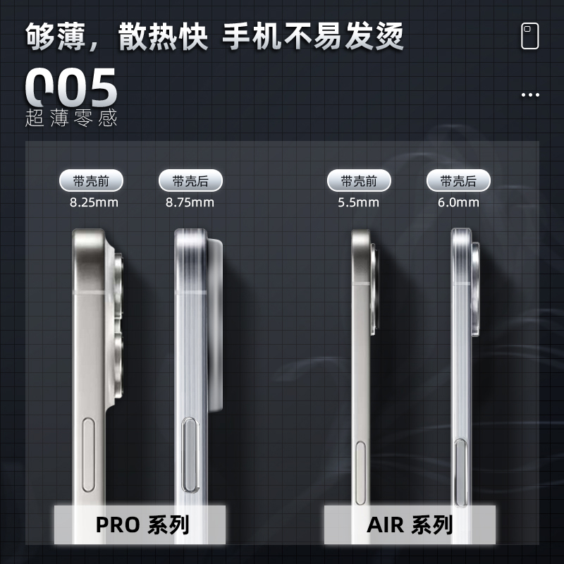 冰感散热]品胜适用苹果17promax手机壳新款iPhone16pro超薄防摔15pm透明14保护套13全包软12plus磁吸高级感女
