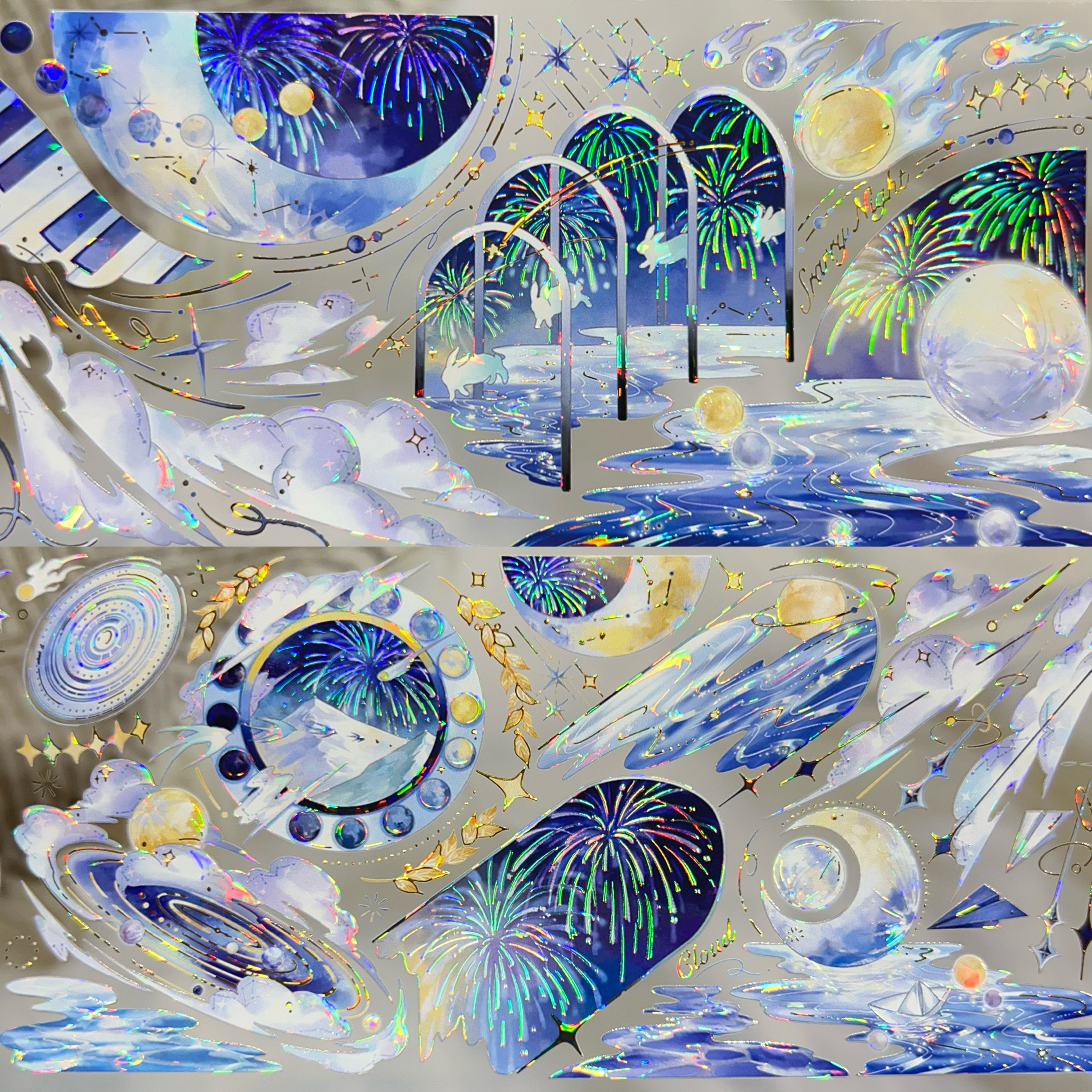 Just分装手账胶带星河浩渺3材质贝壳光霓光贝壳金星空音符流麻咕