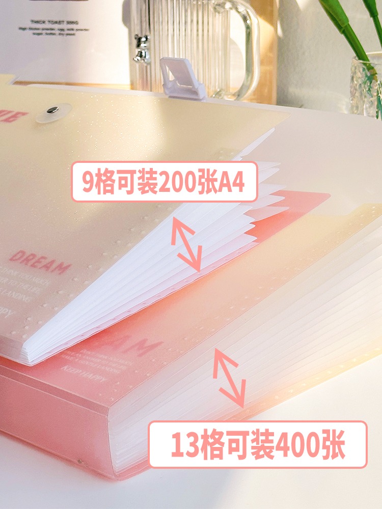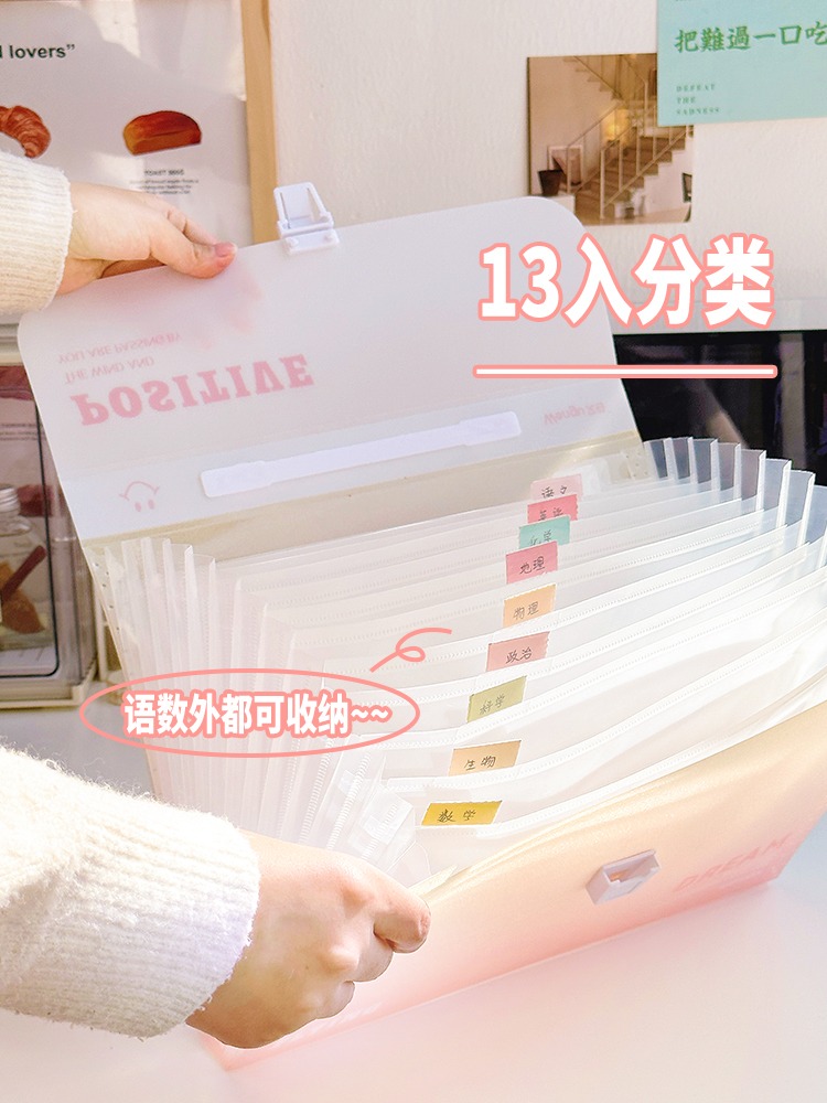 文谷12入a4渐变色风琴包学生大容量小清新可爱手提手风琴文件夹试卷收纳袋可挂小学初中高中生高颜值试卷夹