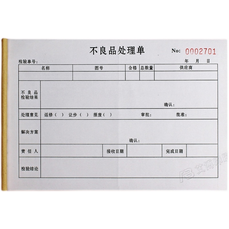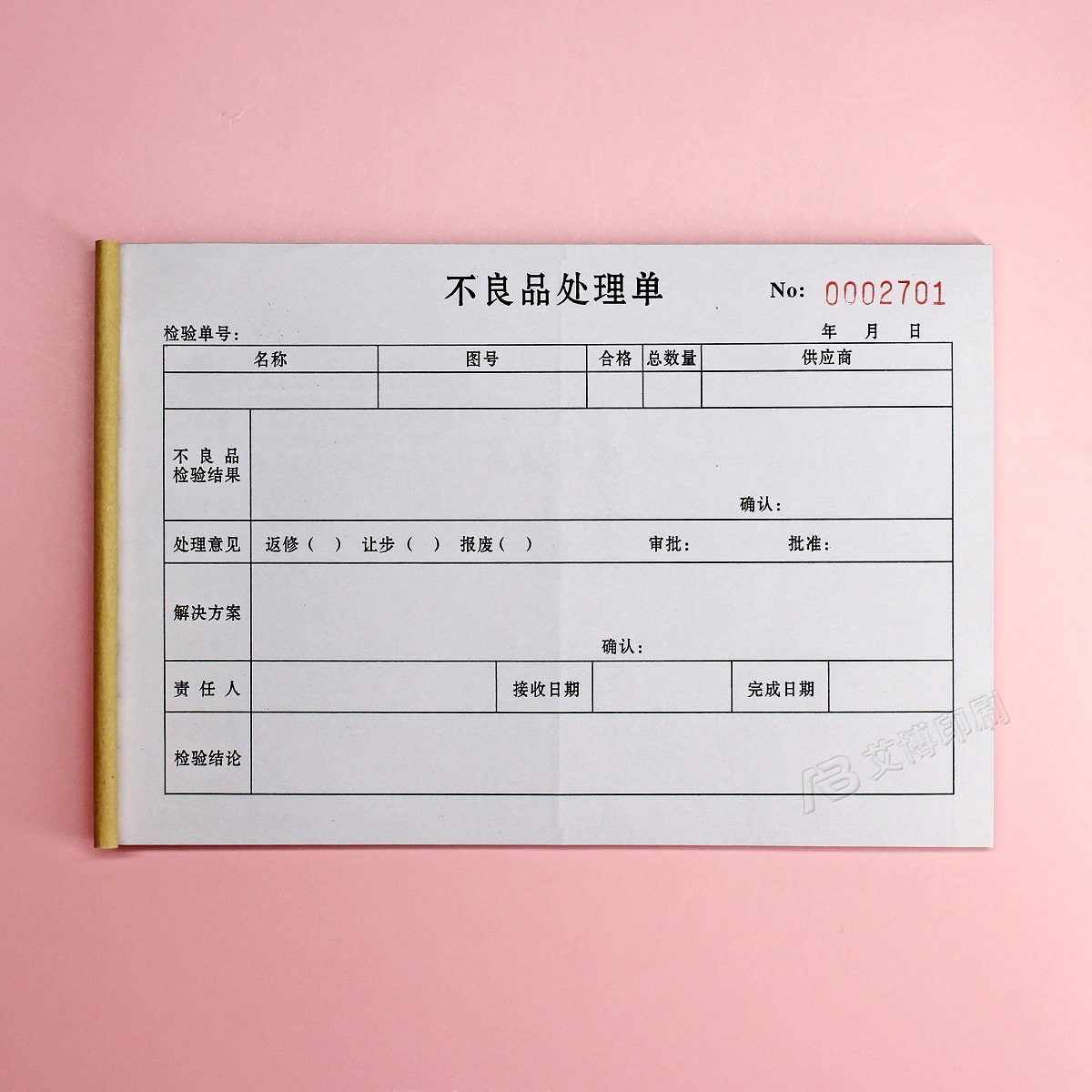 供应商来料质量异常不良品处置报告单二联三联不合格品处理单定制