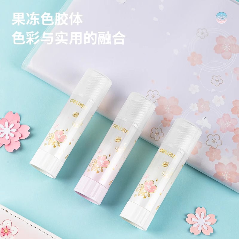 得力光樱下果冻色透明固体胶中小学生DIY手工粘胶ACR材质高粘度儿童幼儿园手工黏贴制作胶财务办公用固体胶棒