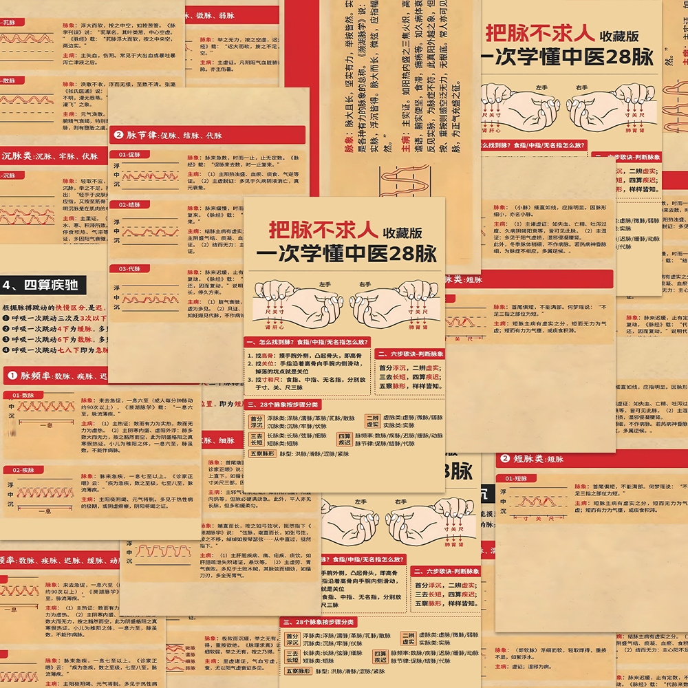 学懂中医28脉】中医基础脉象问诊入门级教学指导图解知识点贴画