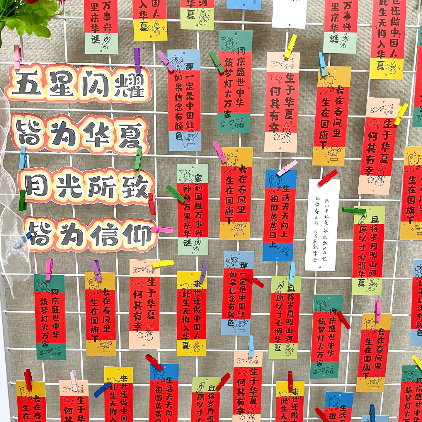 创意国庆节爱国主题许心愿卡片幼儿园环创展板氛围布置装饰小学生手写空白祝福祖国文字书签DIY自制祈愿贺卡