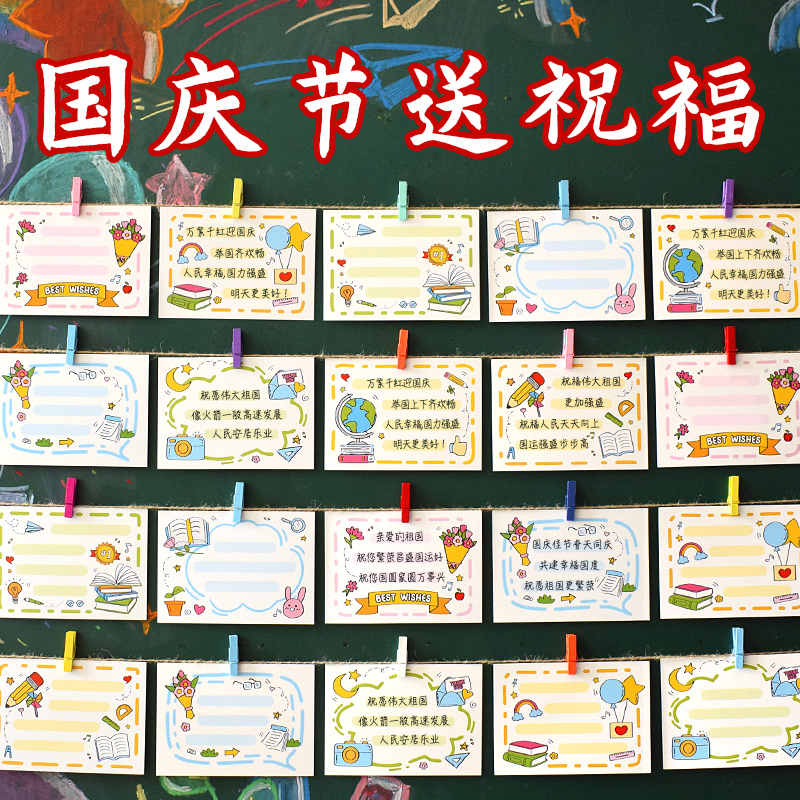 祖国妈妈我想对你说国庆节生日快乐祝福留言背景墙贴贺卡学校教室可爱卡通爱国主题黑板报宣传卡片小学生吊卡