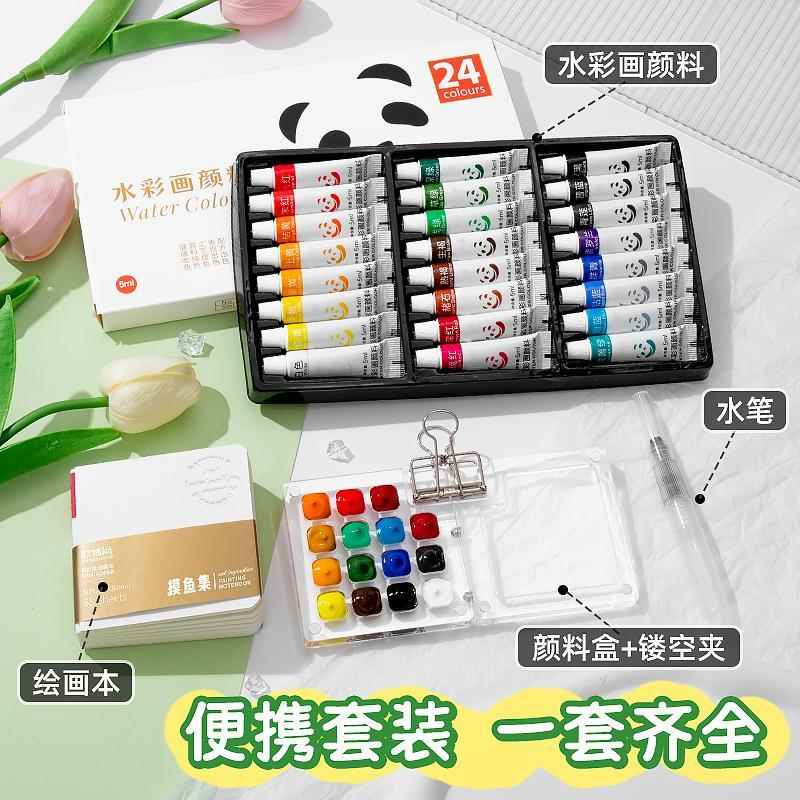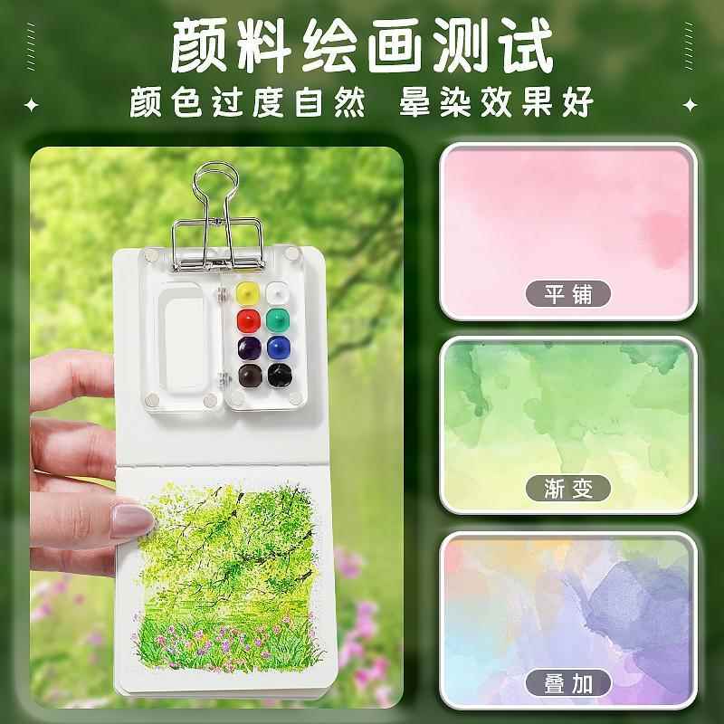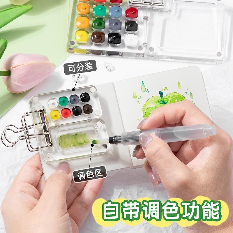 迷你水彩颜料盒亚克力装随身便携手账本旅行绘画本调色小画板套装