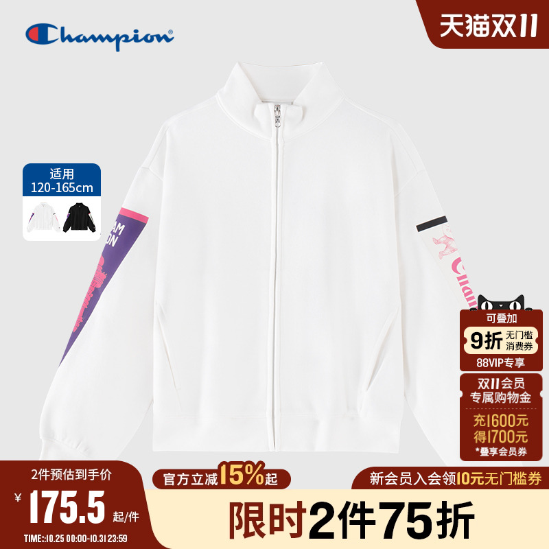 Champion冠军女童装2025秋季新款休闲潮流印花加绒拉链卫衣外套