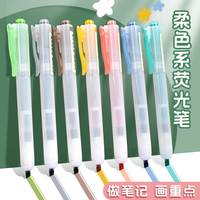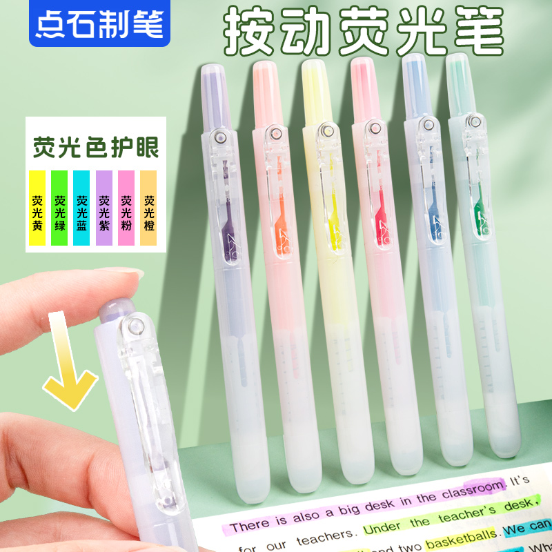 点石制笔按动荧光笔大容量手抄报涂色笔划重点记号笔中小学生护眼复古色手账标注彩色笔记标记书写套装易手控