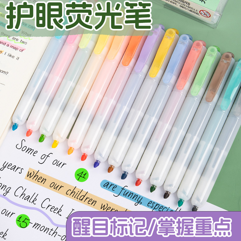 点石三角杆荧光笔12色记号笔简约学生划重点标记笔套装柔色手账笔