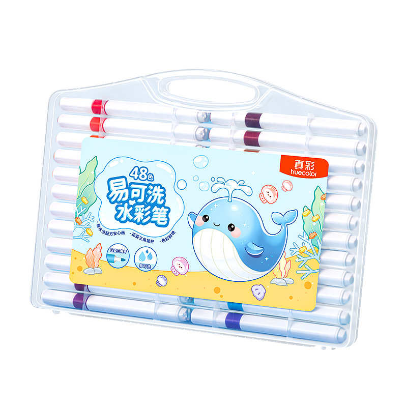 真彩水彩笔儿童可水洗不脏手彩笔画画笔可洗12色软头绘画48色