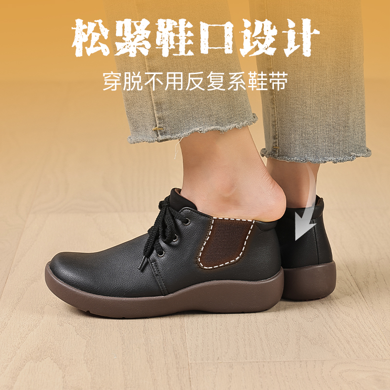 牛筋底妈妈鞋真皮防滑软底休闲中老年单鞋舒适蝴蝶结中年春秋皮鞋