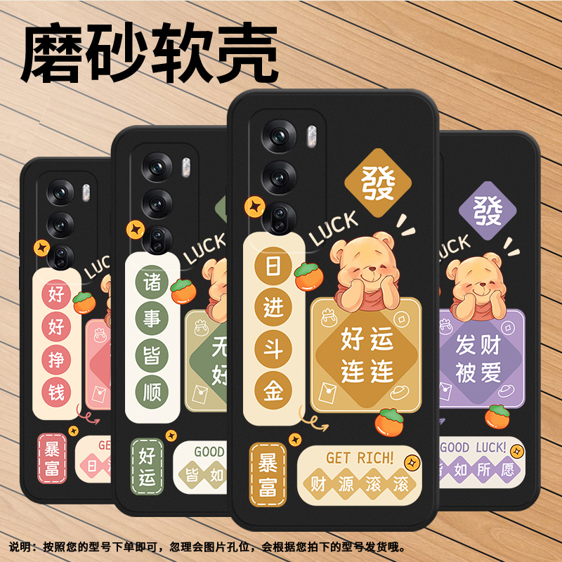 适用OPPOReno12国际版手机壳Reno12Pro国际版保护壳5G全包边发财被爱磨砂壳日渐富有纯黑色超薄诸事皆顺趣味