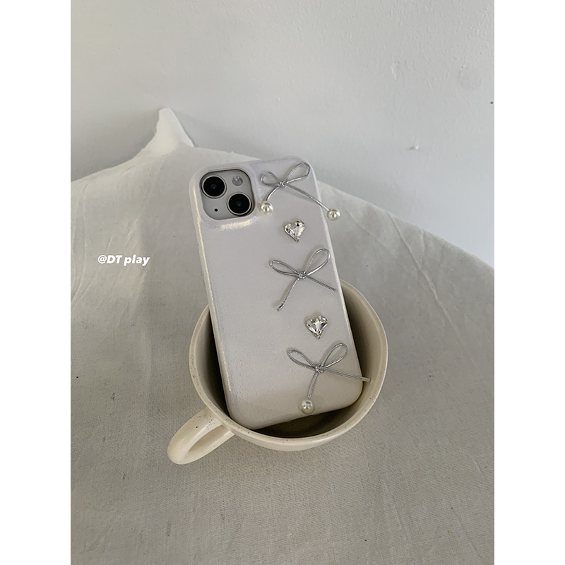 DT play 珠光白色蝴蝶结爱心少女气质质感韩国ins风小众博主适用于iphone16promax/15/14苹果13手机壳保护套