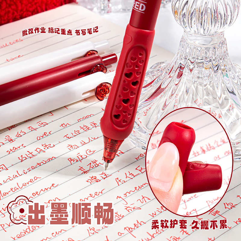 三年二班×点石红笔速干学生用红色中性笔老师专用粗头批改作业高颜值柔绘笔直液式刷题笔圆珠笔勃艮第红水笔