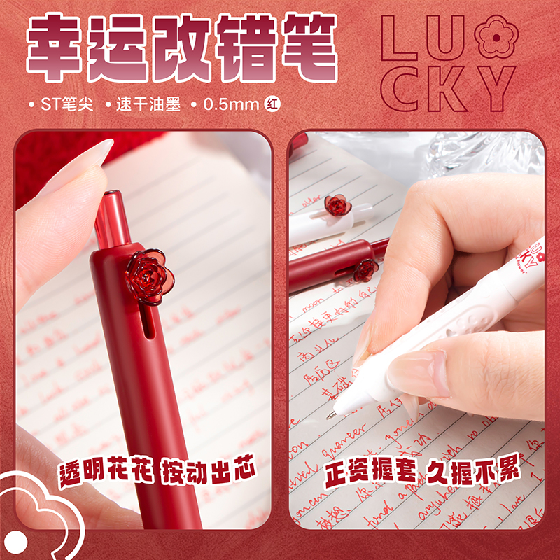 按动中性笔改错笔红笔学生专用圆珠笔按压式速干顺滑st笔头老师批改作业女生高颜值刷题笔2025超火笔好看的笔