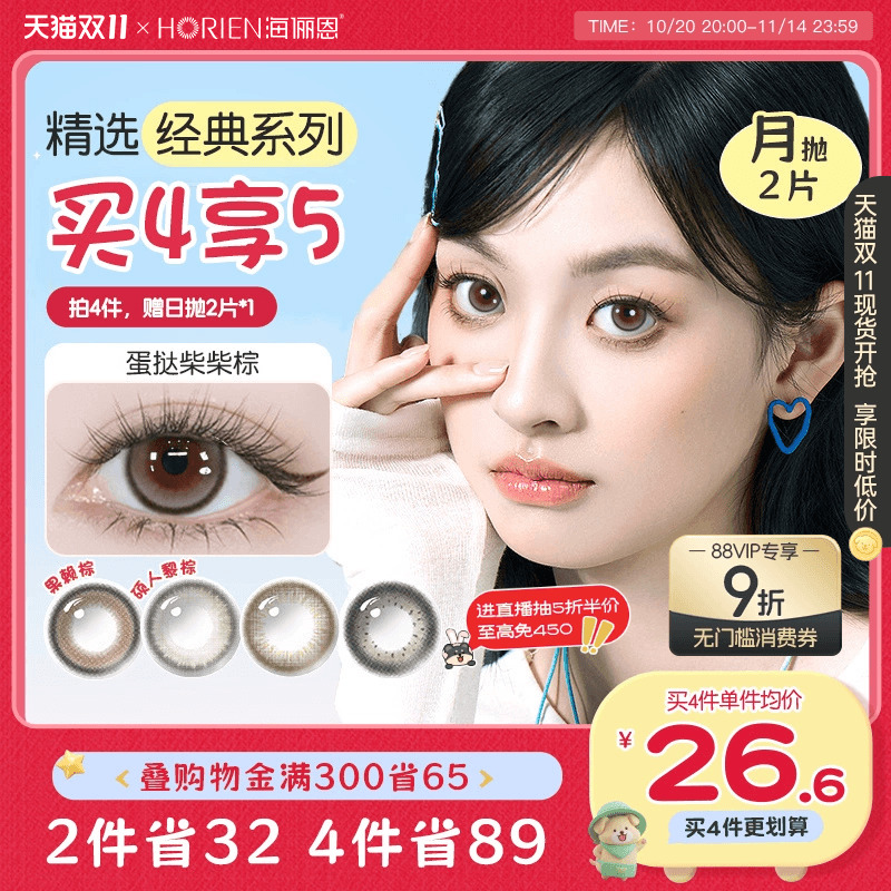 【买4享5】海俪恩精选美瞳月抛2片小直径彩色隐形眼镜