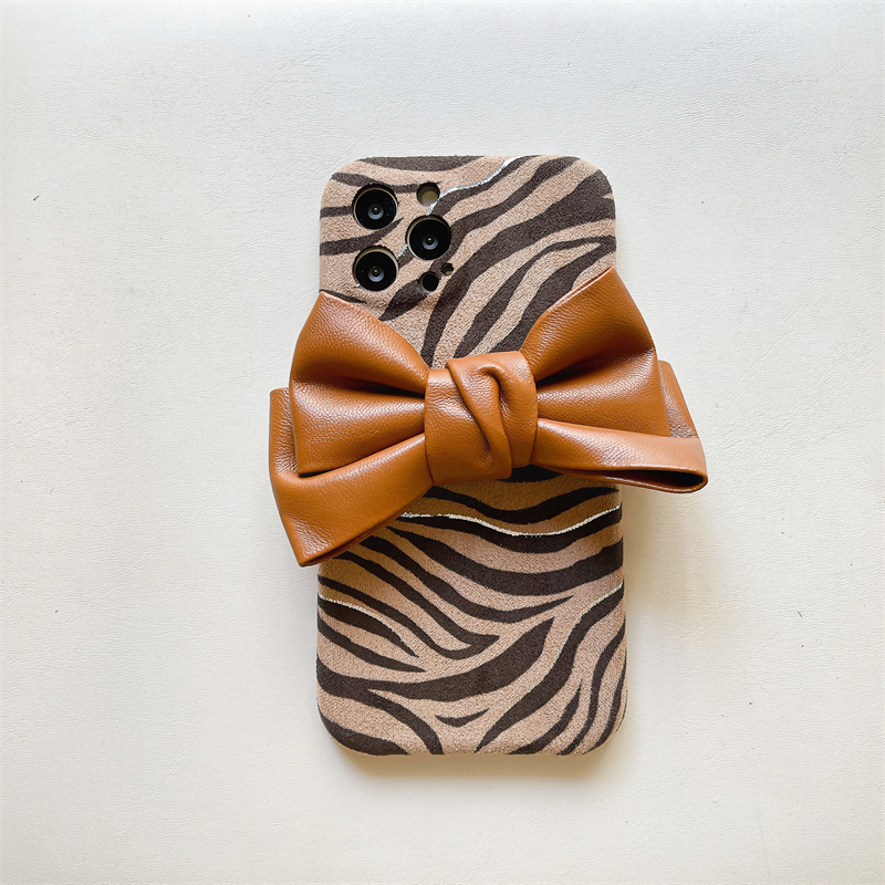 秋冬布艺斑马纹蝴蝶结适用苹果16promax手机壳16pro/15promax保护套防摔14/13软壳华为mate60pro/P60pro手机