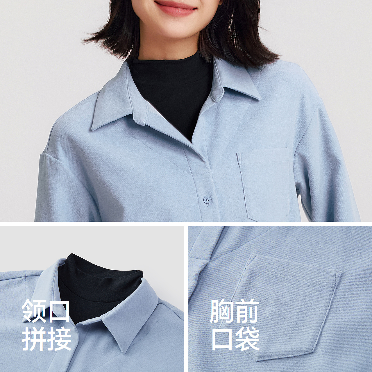 森马长袖衬衫女冬季中长款假两件宽松磨毛衬衣通勤温柔系气质上衣