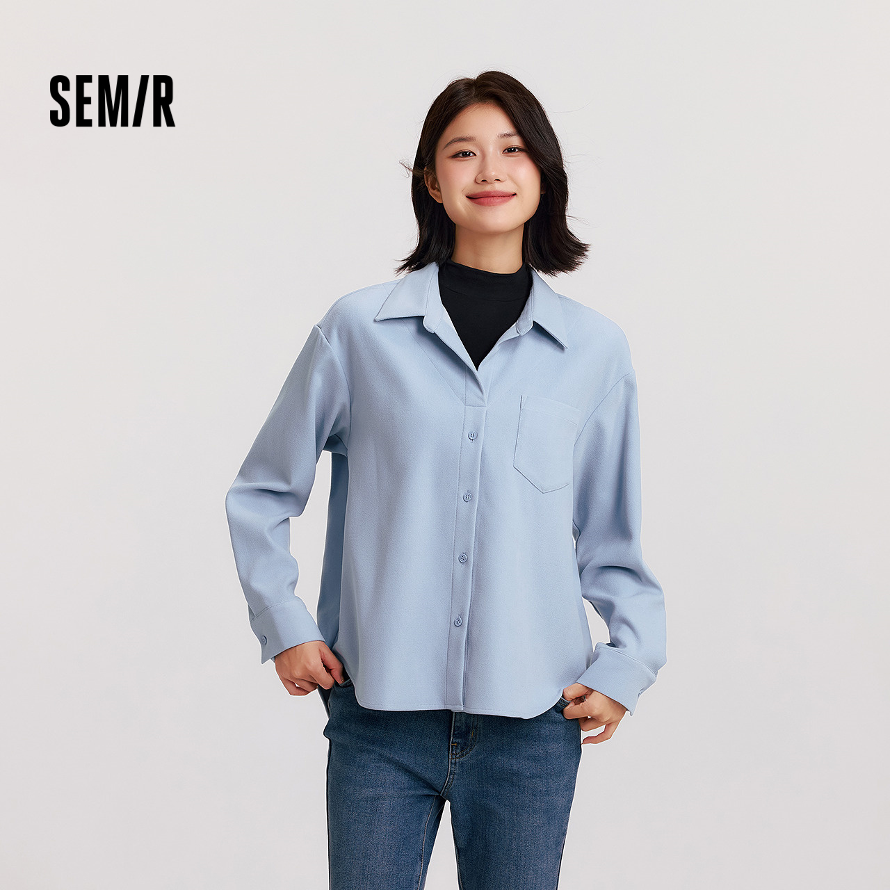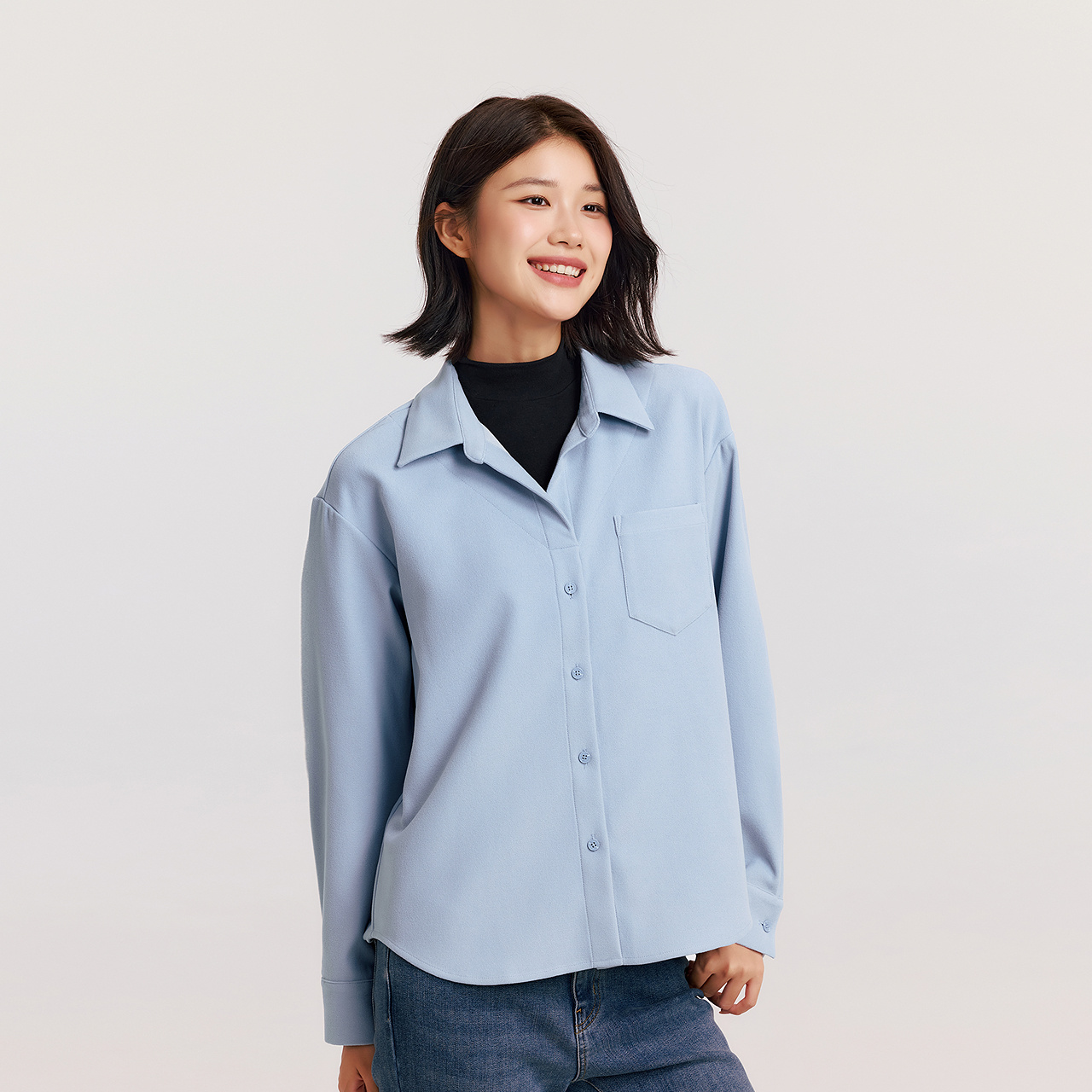 【赵露思同款】TeenieWeenie小熊秋季蓝色通勤衬衫高智感长袖衬衣
