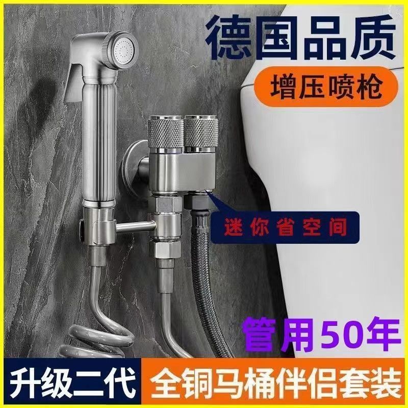 全铜马桶伴侣套装角阀卫生间冲洗增压喷枪一进二出双控双用二