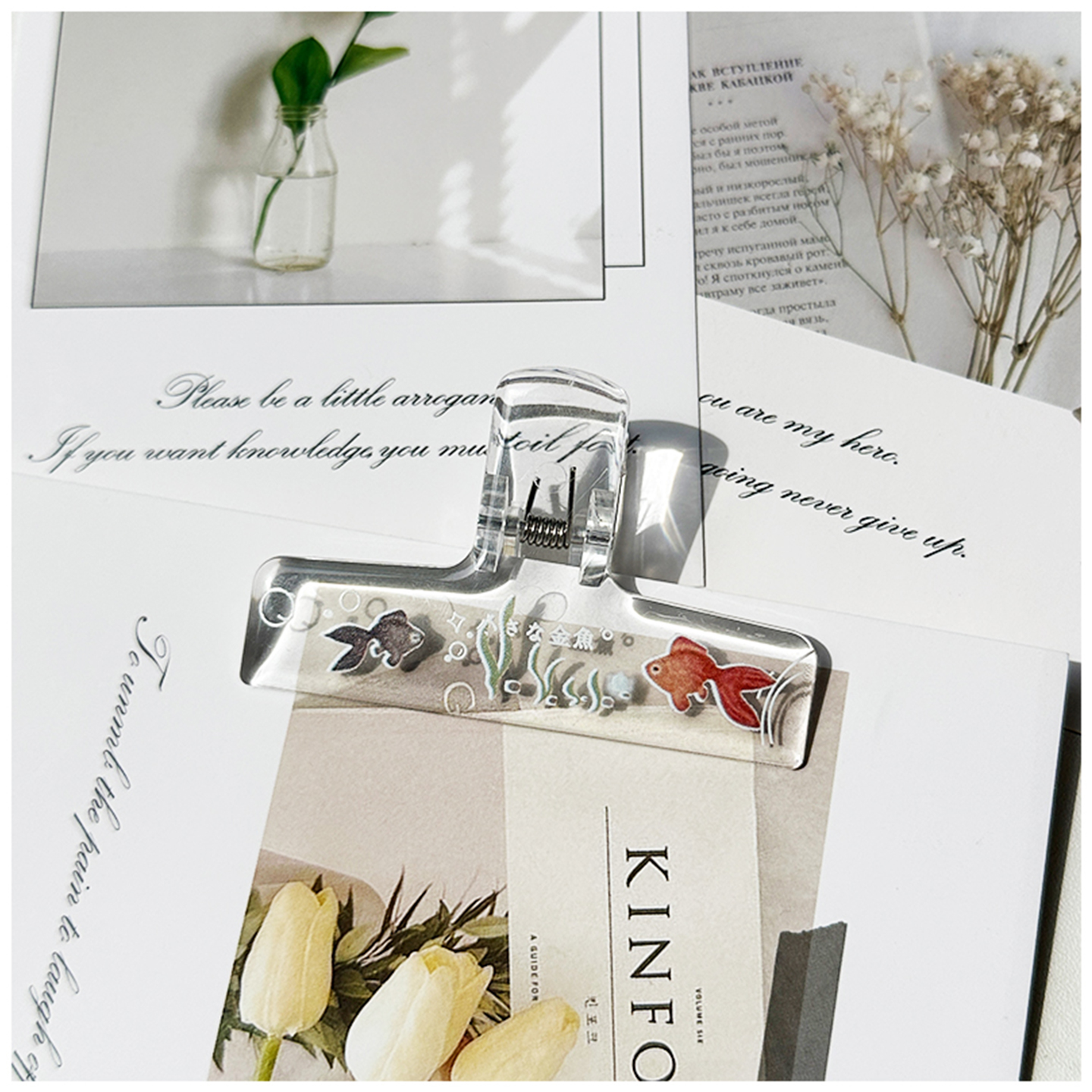 夏日金鱼长尾夹透明亚克力学生书本夹手账钢琴谱固定器文件票据子