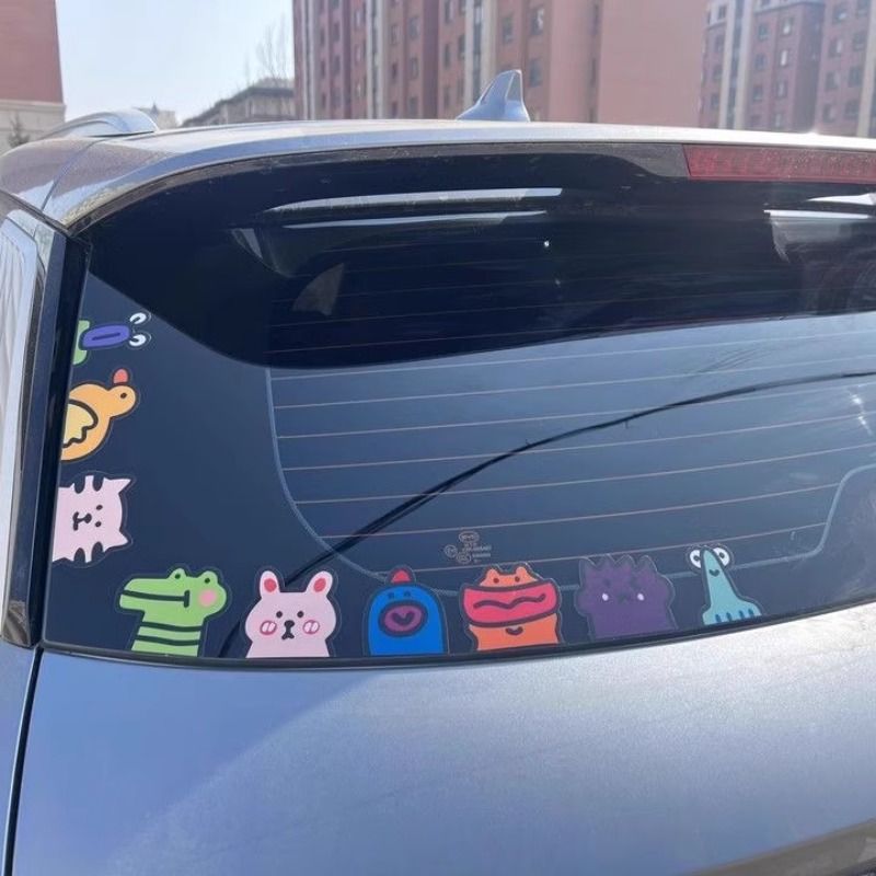 汽车贴纸车身卡通手绘动物图案可爱划痕遮挡电动车摩托装饰防水贴