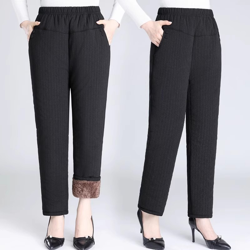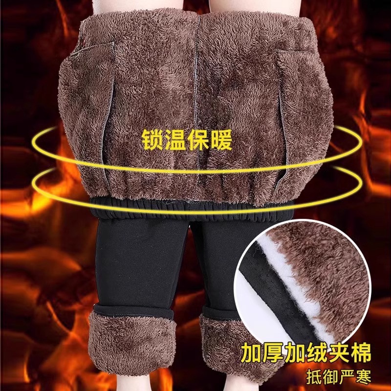 中老年人冬季裤子加绒加厚羊羔绒妈妈保暖棉裤女外穿宽松奶奶长裤