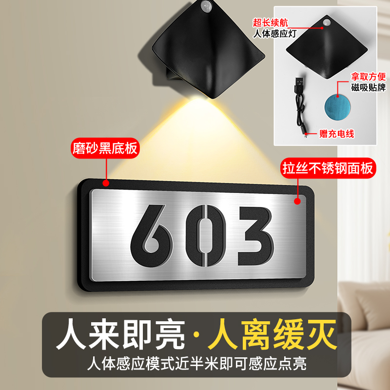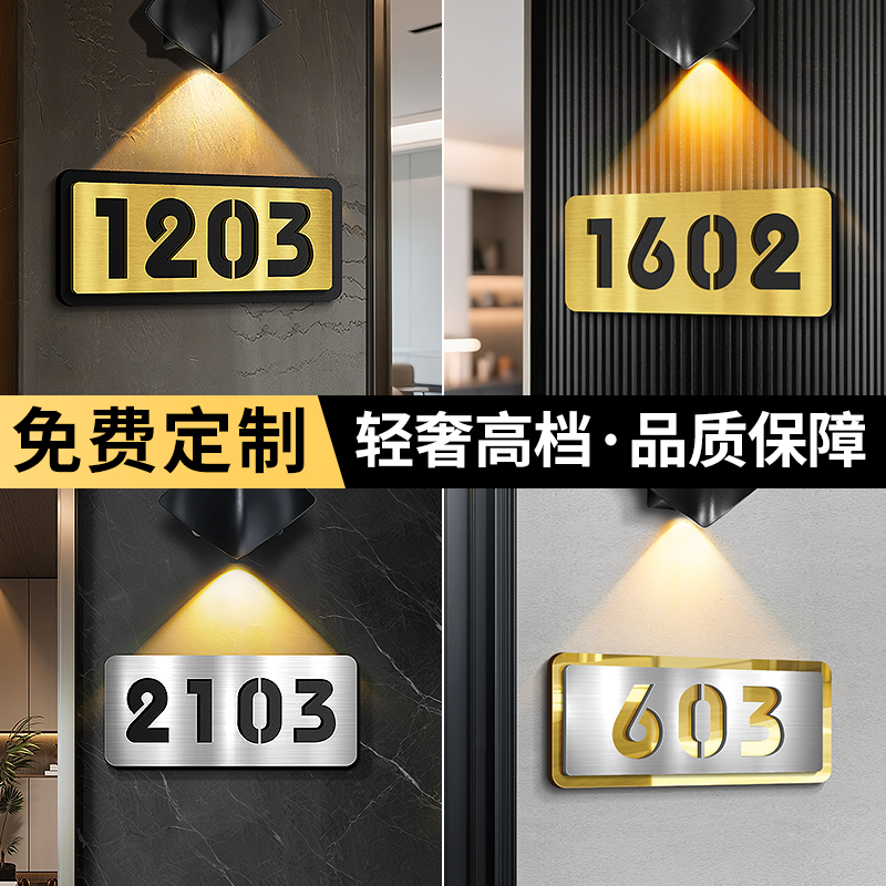 不锈钢门牌号码牌家用磁吸自粘房间号高级感轻奢创意入户房号门号标识数字贴出租房家庭住宅2025新款定制定做