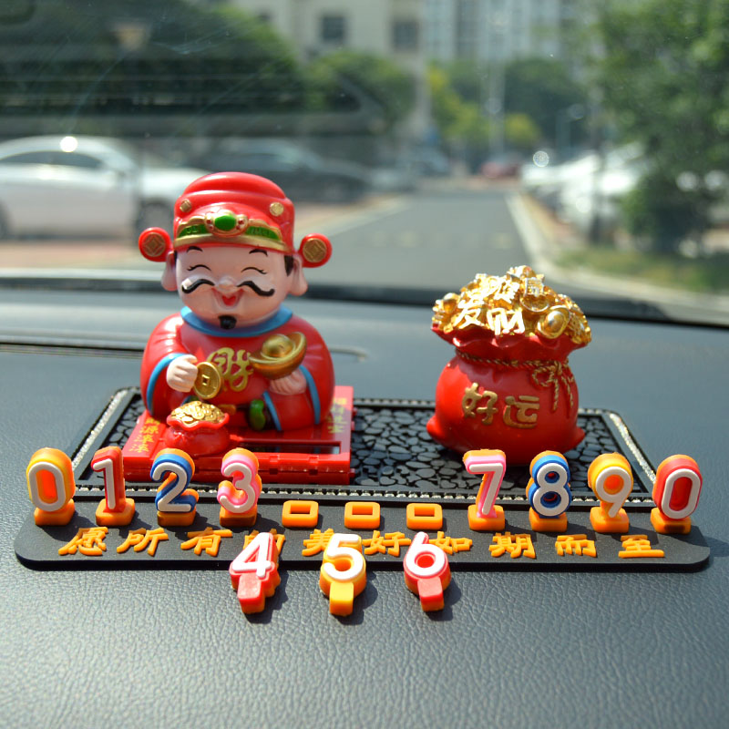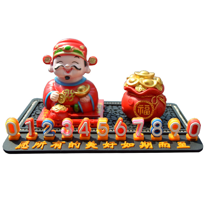 车载临时停车号码牌太阳能点头财神爷汽车挪车电话牌车内移车摆件