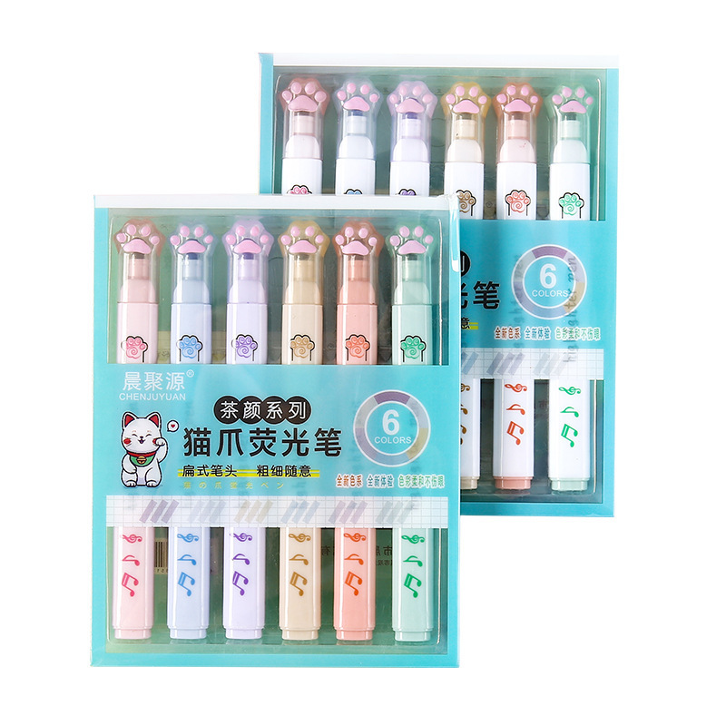 猫爪荧光笔护眼手账专用笔划重点标记笔学生大容量彩色莫兰迪记号笔女生彩色高颜值套装集物社做笔记儿童涂鸦