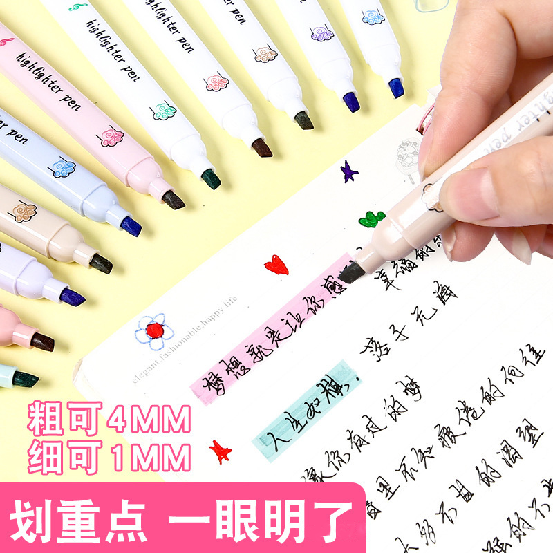 笔记荧光笔糖果色标记笔学生记号笔彩色粗划重点韩国小清新荧光笔