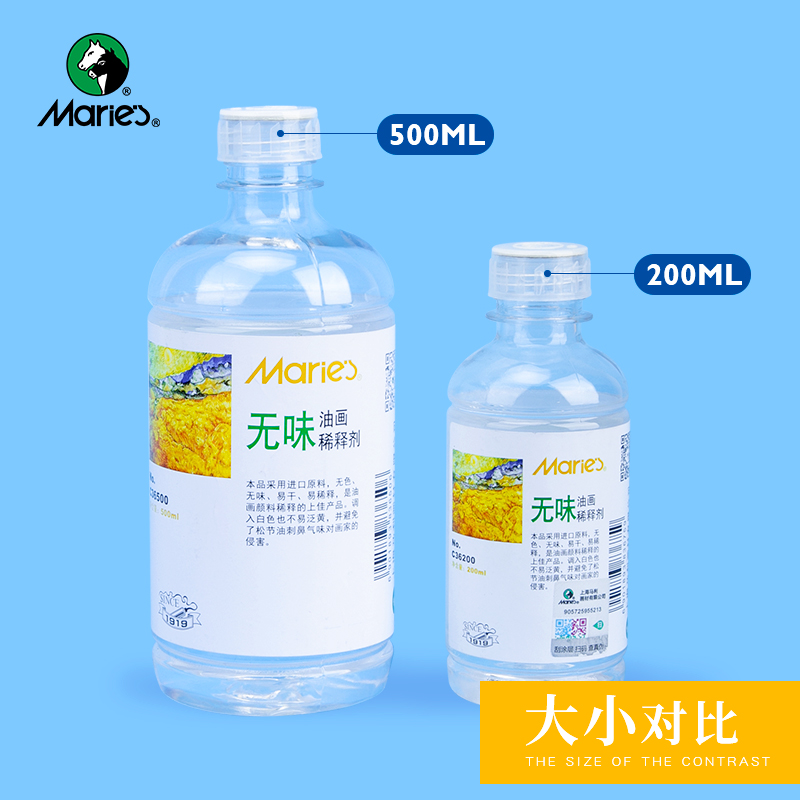 马利牌500ml无味松节油三合调色油稀释剂稀释液板画工具稀料洗笔媒介喷雾上光油光亮清洗松油罩色剂碳氢光油