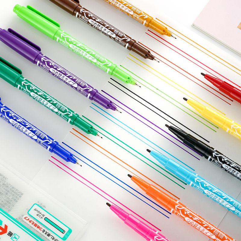 晨光6230水性小双头勾线笔极细0.8mm+粗5mm学生办公手账记号笔 标记笔防渗儿童绘画学习记号笔多材质书写文具