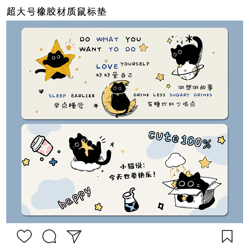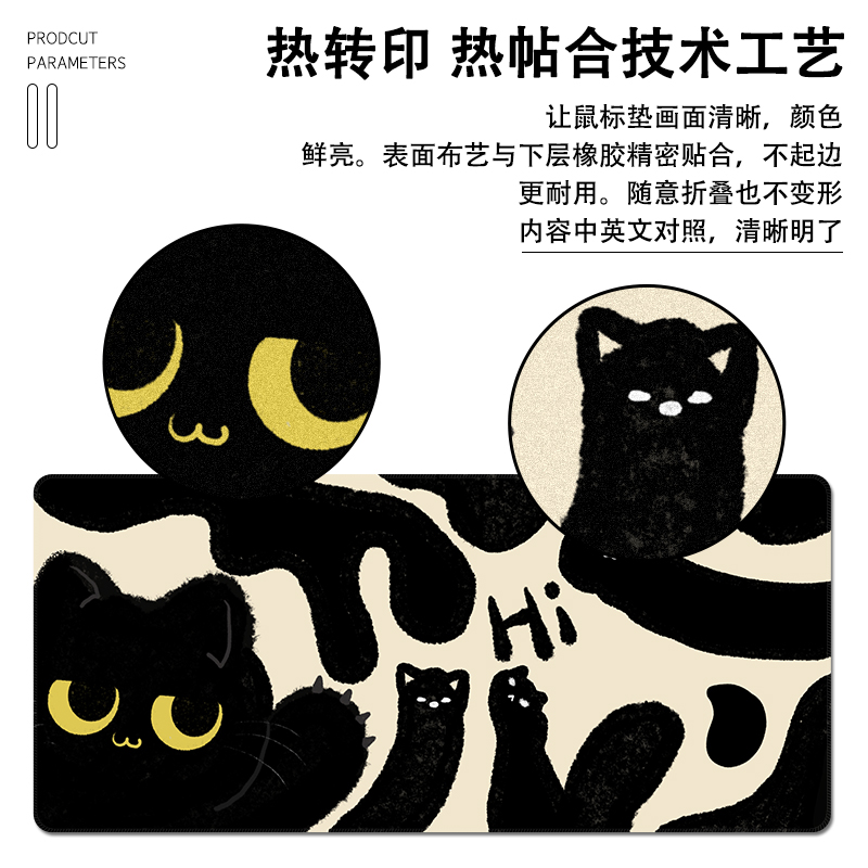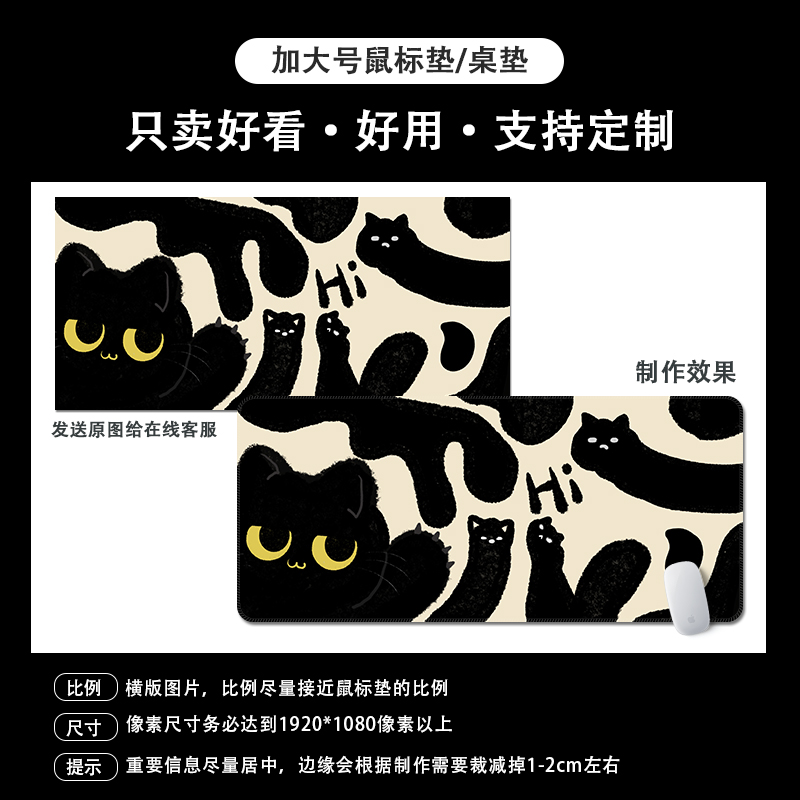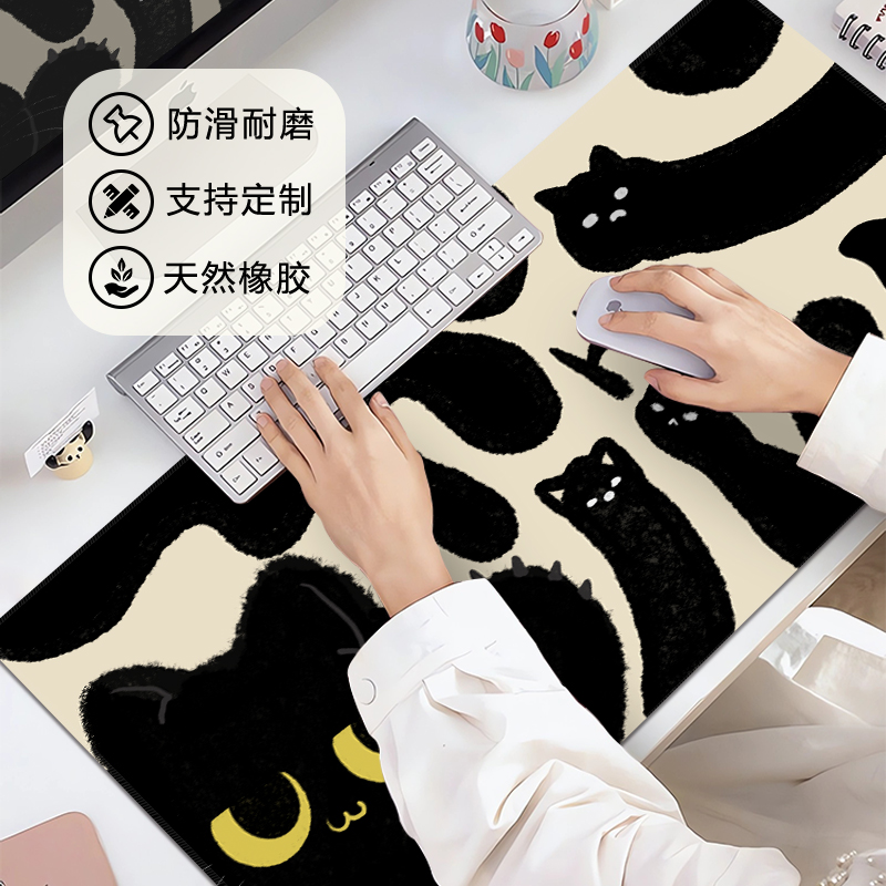 创意小黑猫鼠标垫女生可爱办公电脑桌垫超大游戏键盘垫写字台定制