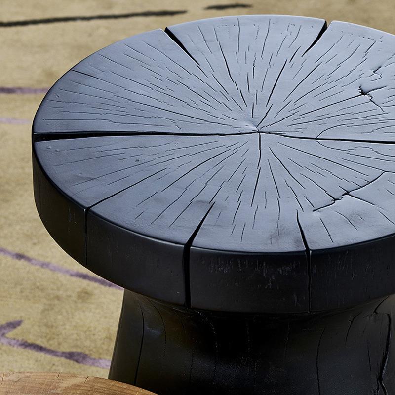中民宿新性实木角几酒式店创d01意炭烧黑色个边几原木树桩墩子茶