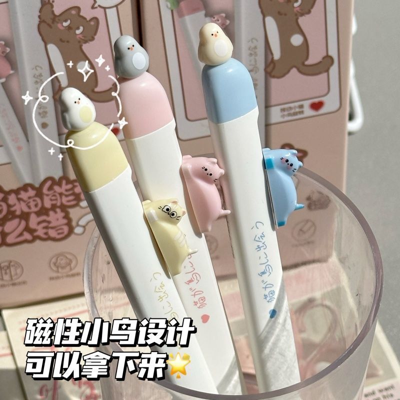 凡物像猫猫磁吸小鸟中性笔ins高颜值学生考试用0.5速干刷题CS黑笔