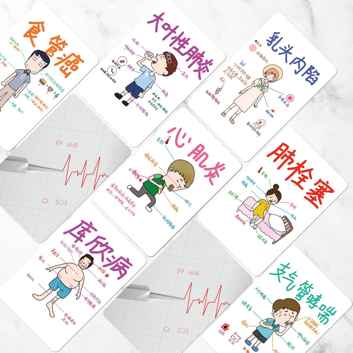医学笔记55张小卡片学生学习知识图解病症地理化学生物心理学贴纸