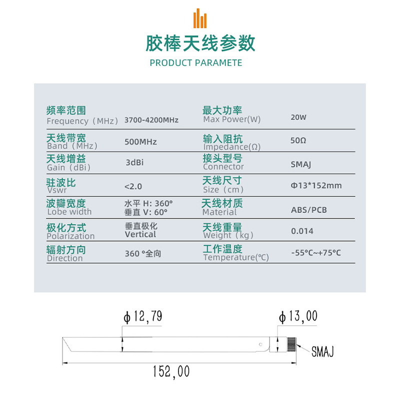 3700-4200MHZ胶棒pcb全向天线UWB定位测距轻便可弯折结构量大优惠自主研发支持定制性能好安装