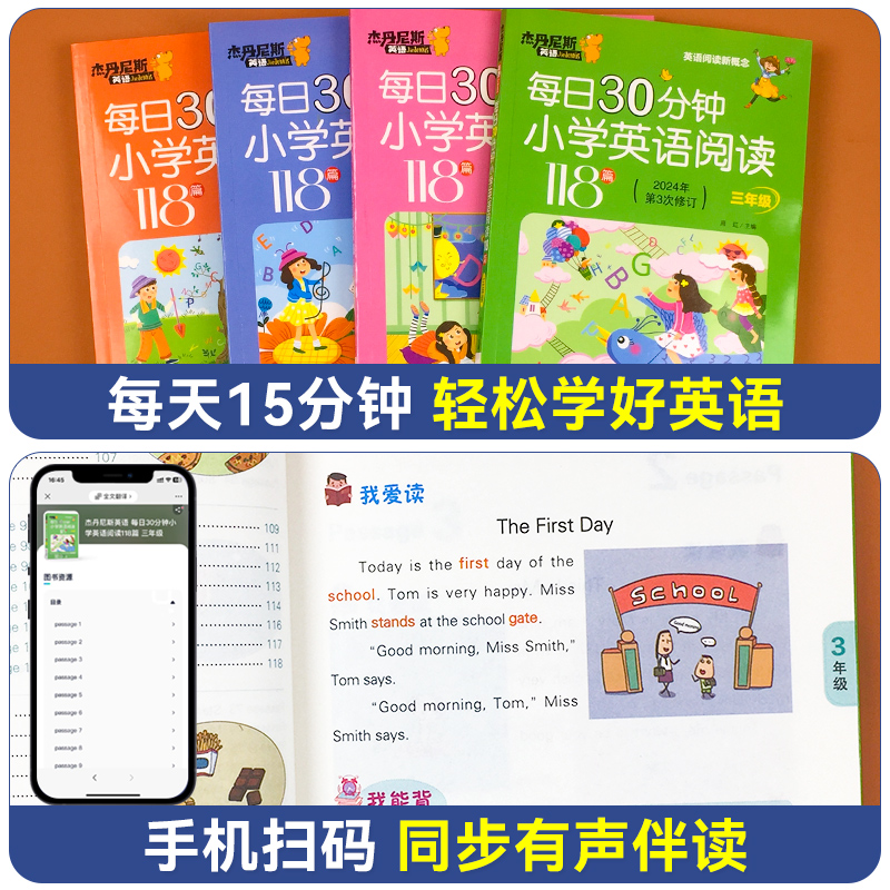 每日30分钟小学英语阅读118篇新概念三年级四年级五年级六年级上册课外阅读书绘本分级读物一练强化训练题6年级5年级4年级同步音频
