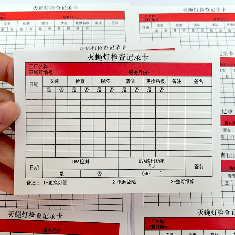灭蝇灯检查记录卡单位工厂灭蚊灯每月维修标签设备养护卡片标识牌