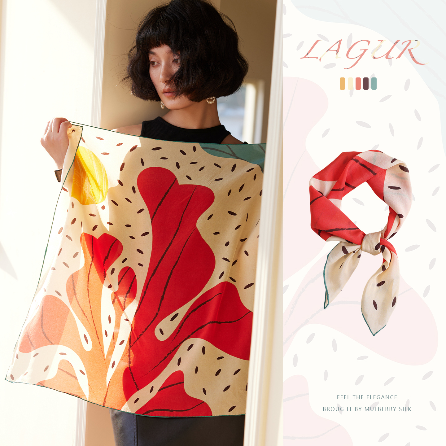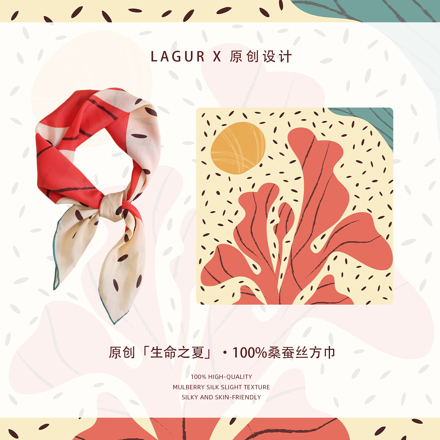 「生命之夏」手工卷边桑蚕丝丝巾真丝65方巾发带绑包春秋新款送礼