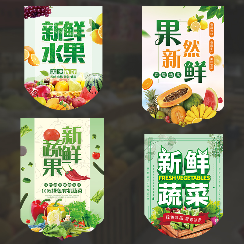 水果店开业气氛装饰A4新鲜水果串旗A3果然新鲜双面挂旗可擦写价格展示牌免打孔大号铜版纸串旗手写POP海报纸